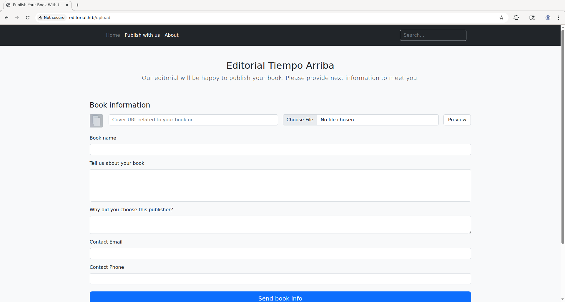 Nothing on the website does anything, but we have this /upload page which lets you upload a book