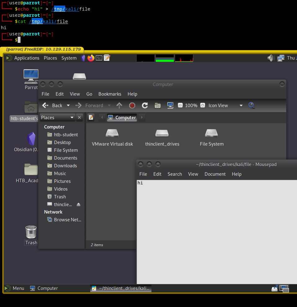 When you try to run FreeRDP 3, you will likely get the BadAtom error. When you try to run FreeRDP 3, you will likely get the following error: This error likely happens because of the lack of GPU passthrough in Qubes VMs (more about it here), the option I see working for me right now is using the Features like mounting a drive from your host also work, and it’s a very convenient way to transfer files to your target machine using RDP. Example: In ┌─[✗]─[user@parrot]─[~]